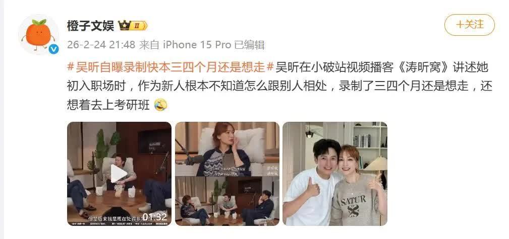 2日消息,吴昕在视频播客《涛昕窝》中的一番自白,勾起了无数“职场新人”的回忆。谁能料到,如今在镜头前应对自如的她,当年在《快乐大本营》录制三四个月时,满心都是“辞职去上考研班”?这段由经济困境、社交恐惧与人气落差交织而成的至暗时光,引发了全网打工人的强烈共鸣。